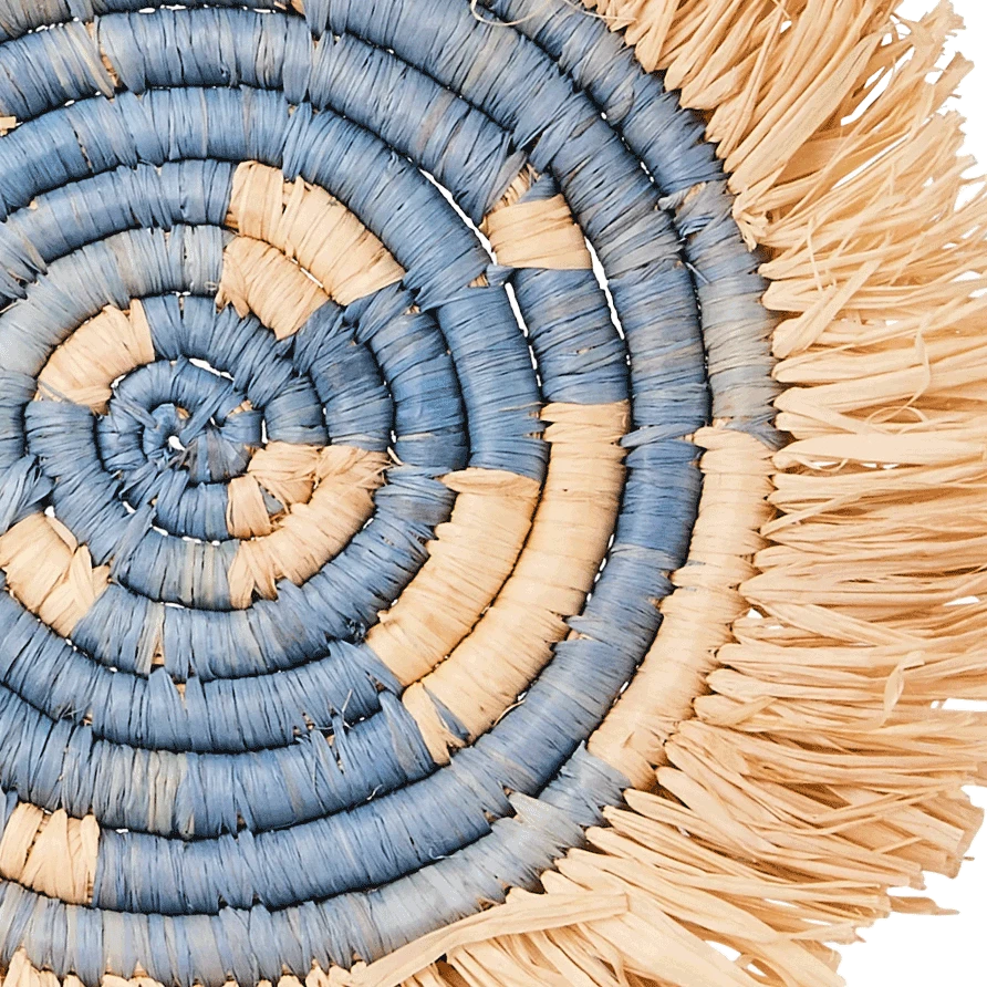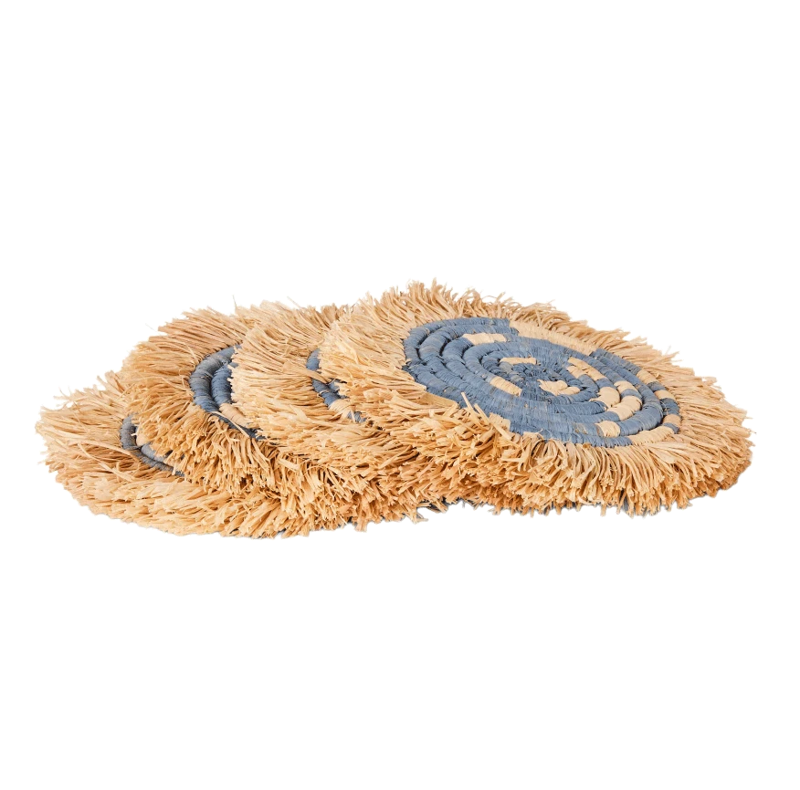 Intricately crafted with timeless tradition, this carefully dyed sisal fiber and sweet grass fringe coaster set makes a bold and exciting statement piece.