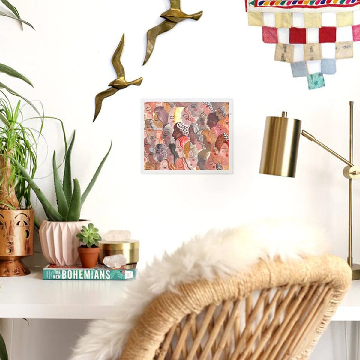 Justina Blakeney is an artist, designer, and founder of Jungalow®. She employs watercolor, gouache, collage, and pen on paper to create her artworks and explores themes of identity and togetherness.