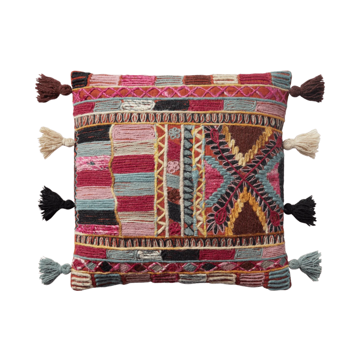 Make your space a work of art with our Jemsa Pillow! This velvety soft square pillow features an eye-catching multi-tassel design and contrasting trim. Put it in the mix to get the creative, boho-style vibes flowing.