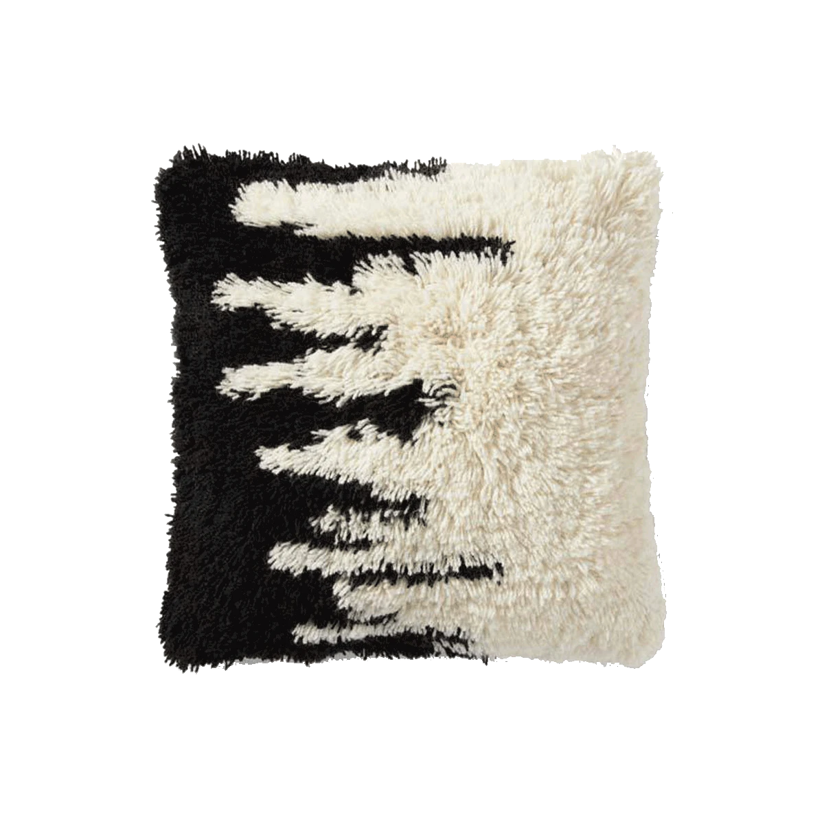 Designed by Justina Blakeney® for Loloi, this hand woven pillow features a drastic black and white color block with smooth water like edges – we suggest pairing this pillow with bright and bold colors!