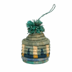 Blue Patterned Pom Pom Basket Holiday Ornament